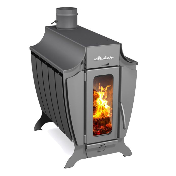 Также, печь Stoker 150-G обладает возможностью нагрева воды при установке теплообменника. Это позволит подключать к печи дополнительные радиаторы отопления или выносной бак.