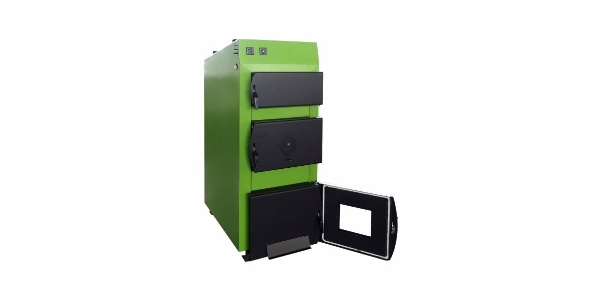 Котлы DRAGON-Bio — это универсальный котел, модельный ряд от 12 кВт до 60 кВт. Высокий КПД котла (до 88% на дровах, до 92% на угле, до 94% на пеллетах). Котел изготовлен из листовой стали 09Г2С (низколегированная сталь толщиной 5 мм выдерживает влияние широкого диапазона температур в условиях многолетних нагрузок и различных деформаций, не теряя пластичности), позволяет увеличить срок службы котла (более 20 лет). Стопроцентная чистка теплообменника, камеры сгорания и конвекционных каналов. Высокая универсальность. Котел укомплектован второй нижней дверцей, одна дверь с отверстием под горелку, вторая глухая с поддувалом для эксплуатации на дровах или угле с регулятором тяги, это позволяет без демонтажа горелки переходить с одного вида топлива на другой. Все дверцы могут быть переставлены и открываться как слева направо, так и справа налево (заводская установка дверок — открывание слева направо) для возможности установки котла как в левом углу котельной, так и в правом. Регулируемая заслонка вторичного воздуха позволяет, осуществлять дожиг пиролизных газов, выделяющийся в процессе горения древесины. В целях безопасности удаления золы перед колосниками установлена заглушка-отбойник для предотвращения выпадения из котла горящих углей при топке дровами или углем.  Котлы имеют увеличенную зольную часть и не требуют частого обслуживания.
